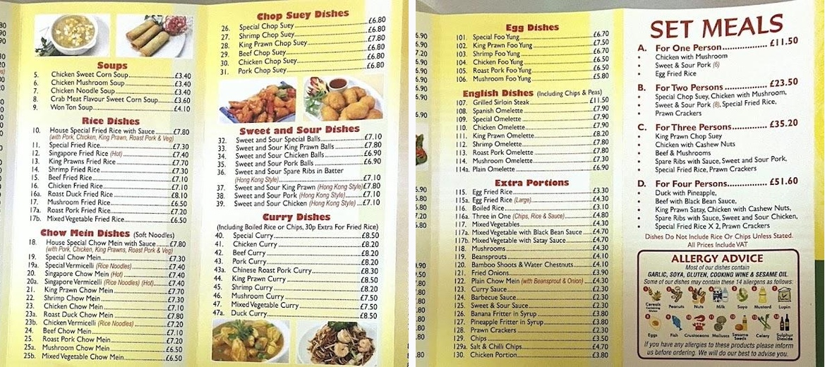 Been ordering for many years. Lovely well cooked food. Great service.